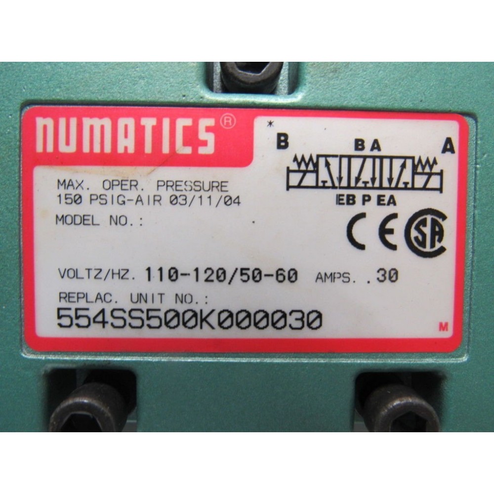 554SS500K000030 Pneumatic Air Solenoid Valve 100-120V 50/60Hz 0.30A